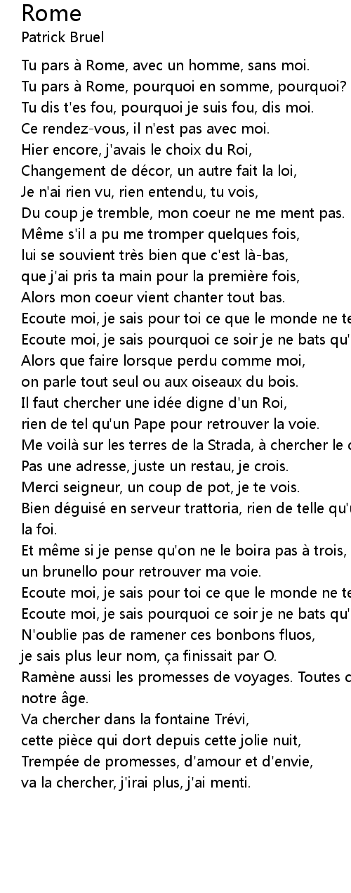 | Tu pars a Rome, pourquoi en somme, pourquoi? | |