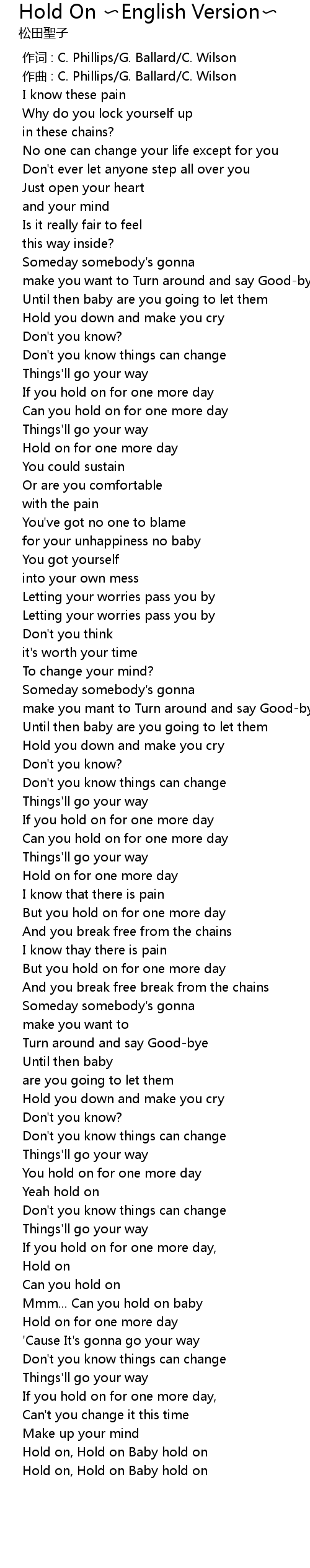 | [00:00.000] | 作词 : C. Phillips/G. Ballard/C. Wilson |