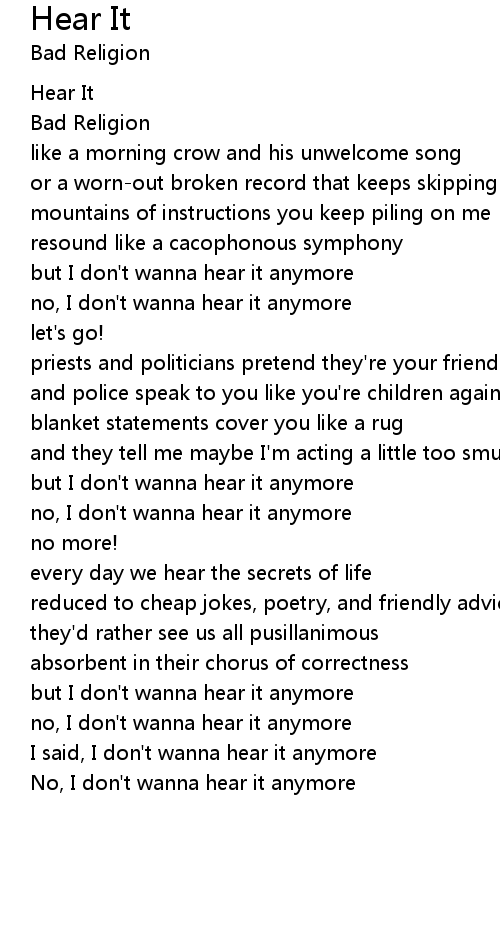 but I don't wanna hear it anymore |
