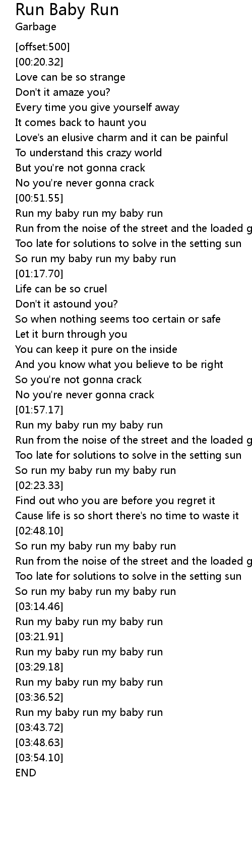So run my baby run my baby run |