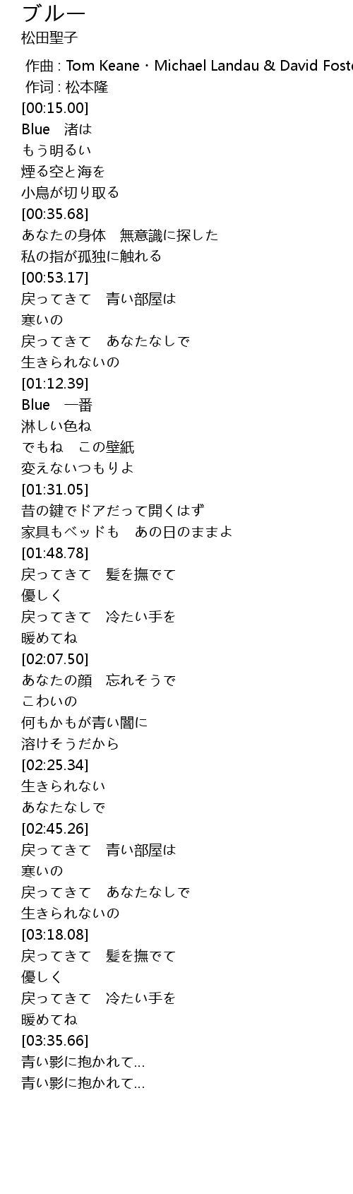 | [03:02.35] | 戻ってきて 青い部屋は |