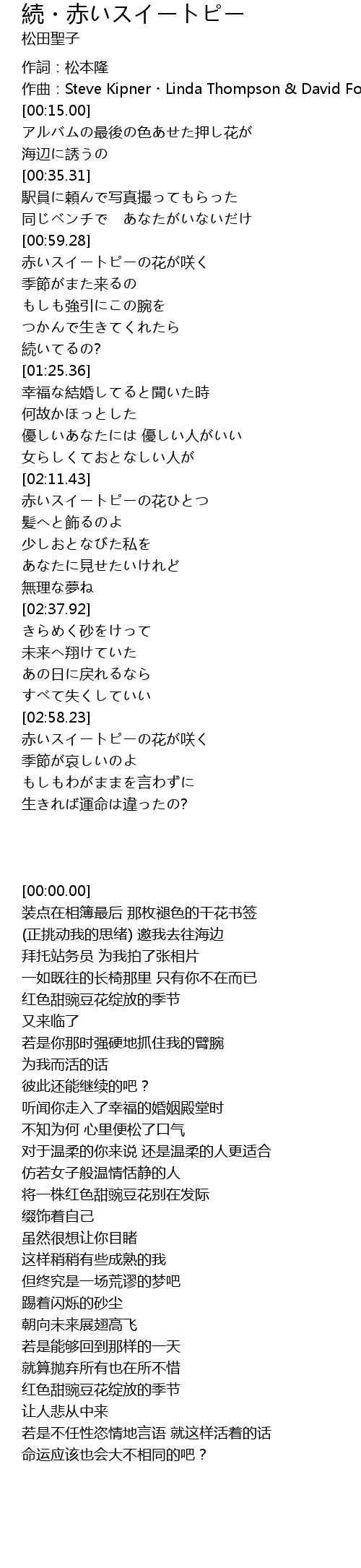 | [03:15.51] | 红色甜豌豆花绽放的季节 |