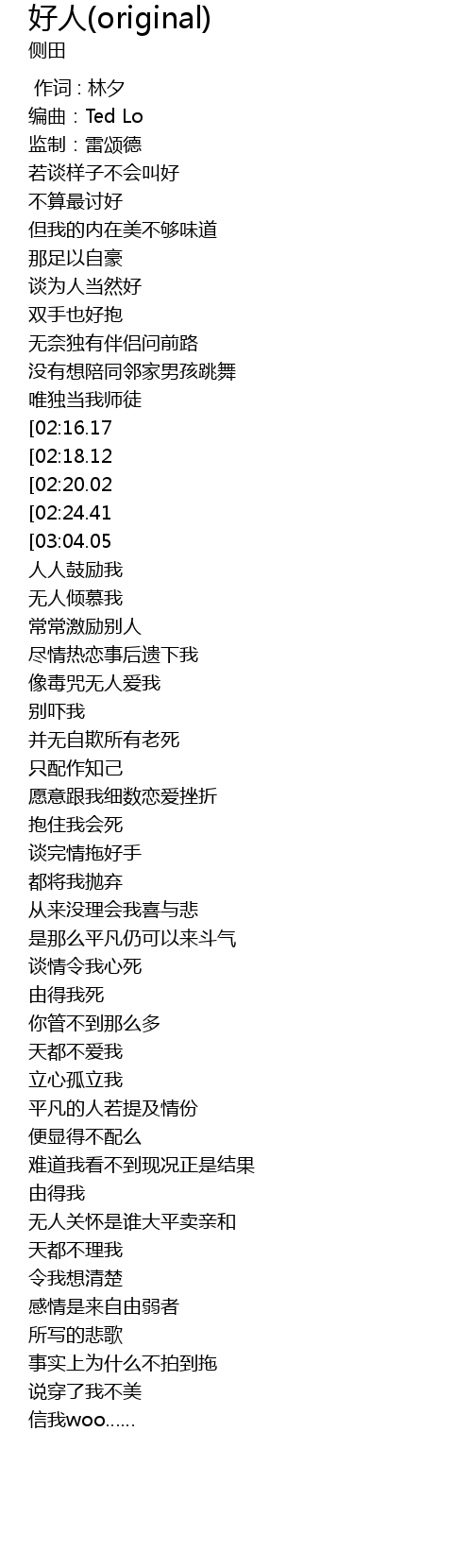 | [02:38.26] | 便显得不配么 |