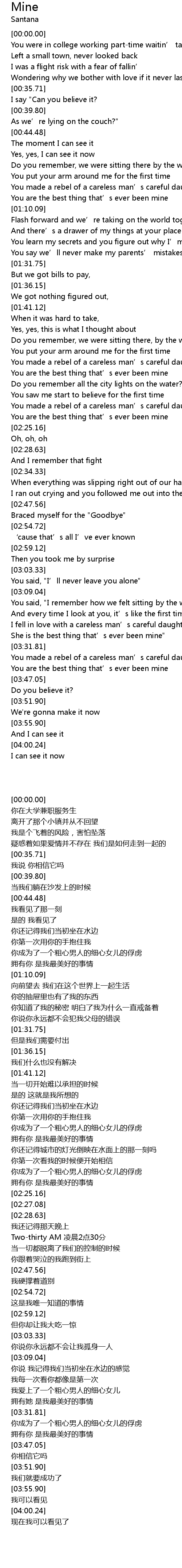 | [03:25.17] | She is the best thing that’s ever been mine" |