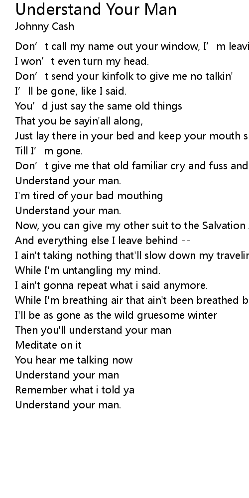 | Then you'll understand your man | |
