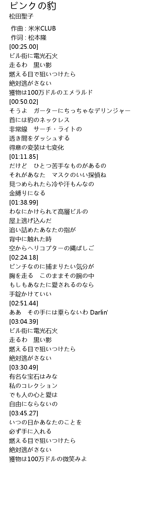 | [04:00.22] | 獲物は100万ドルの微笑みよ |