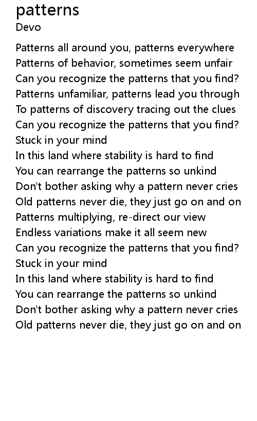 Don't bother asking why a pattern never cries |