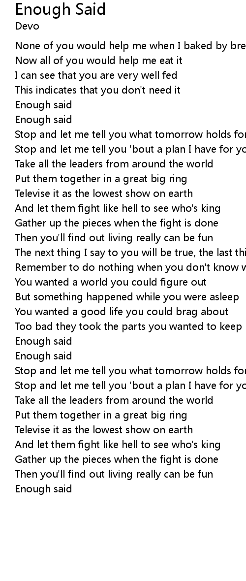 Enough Said 歌词