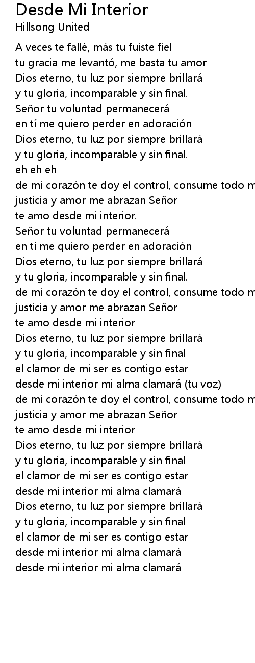 | de mi corazo n te doy el control, consume todo mi interior Dios | |