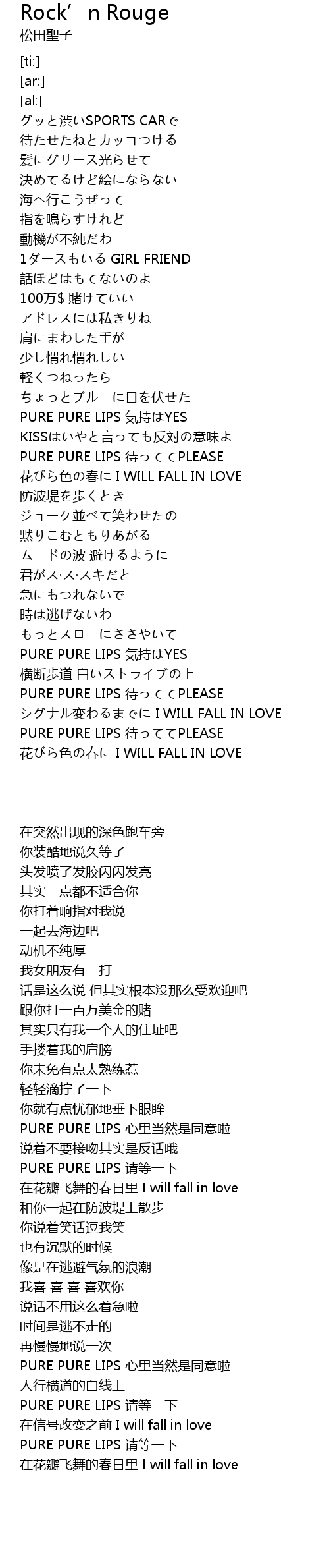 | [01:37.17] | PURE PURE LIPS 请等一下 |