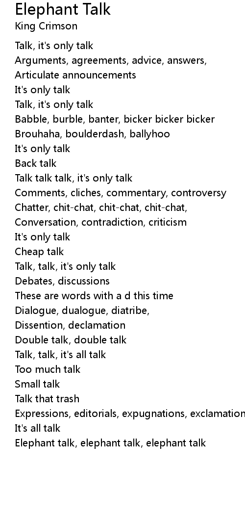 Elephant talk, elephant talk, elephant talk |