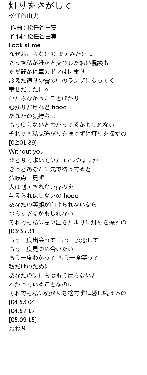 | [03:22.50] | それでも私は思い出をたよりに灯りを探すの |