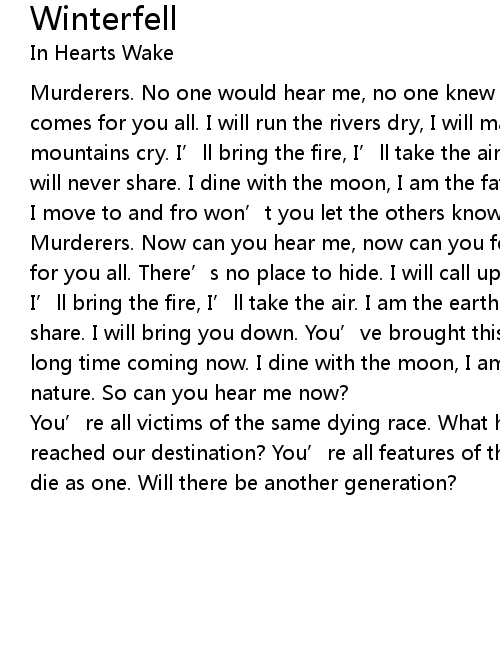 | Murderers. Now can you hear me, now can you feel my soul? My winter comes | |