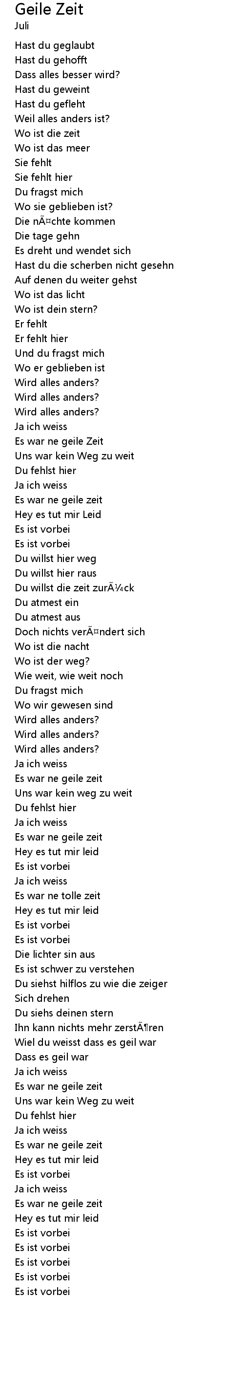 | 歌曲 | Geile Zeit |