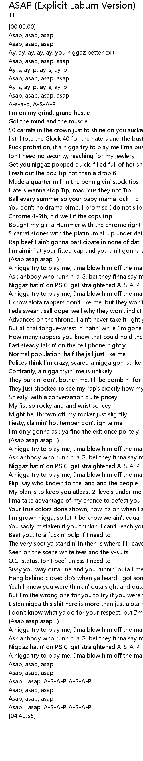 | [04:21.64] | Asap... asap, A-S-A-P, A-S-A-P |