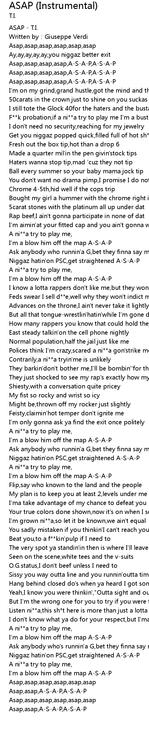 | [00:00.10] | ASAP - T.I. |