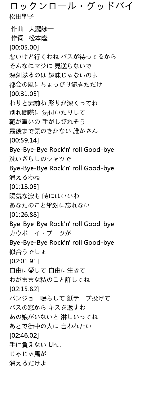 | [01:49.67] | ByeByeBye Rock' n' roll Goodbye |