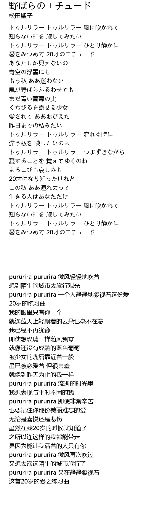 | [00:21.68] | pururira pururira 微风轻轻地吹着 |