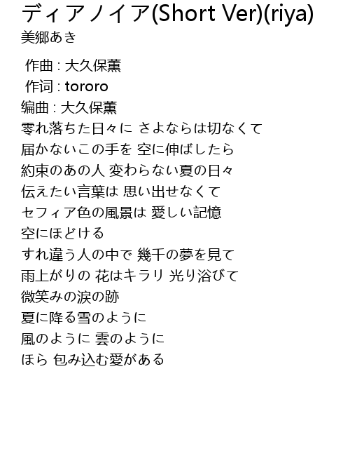 | 歌曲 | ディアノイア(Short Ver)(riya) |