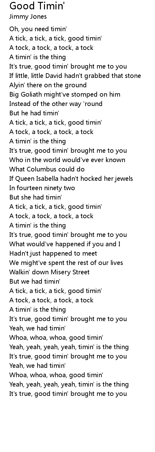 Yeah, yeah, yeah, yeah, timin' is the thing