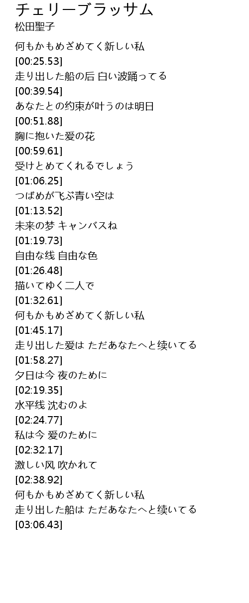 | [00:27.25] | 走り出した船の后 白い波踊ってる |