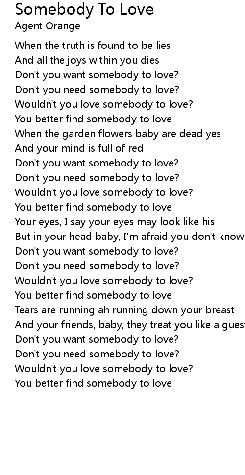Don't you want somebody to love? |
