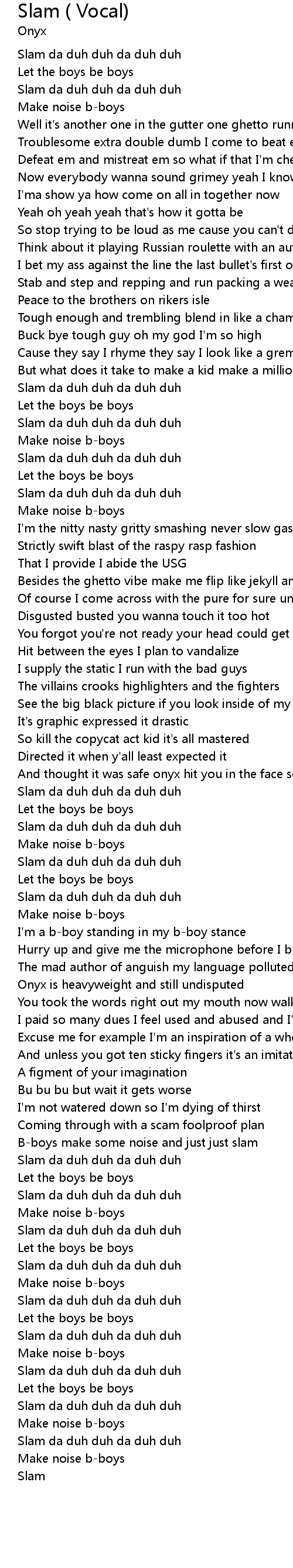 | [01:54.69] | And thought it was safe onyx hit you in the face so slam |