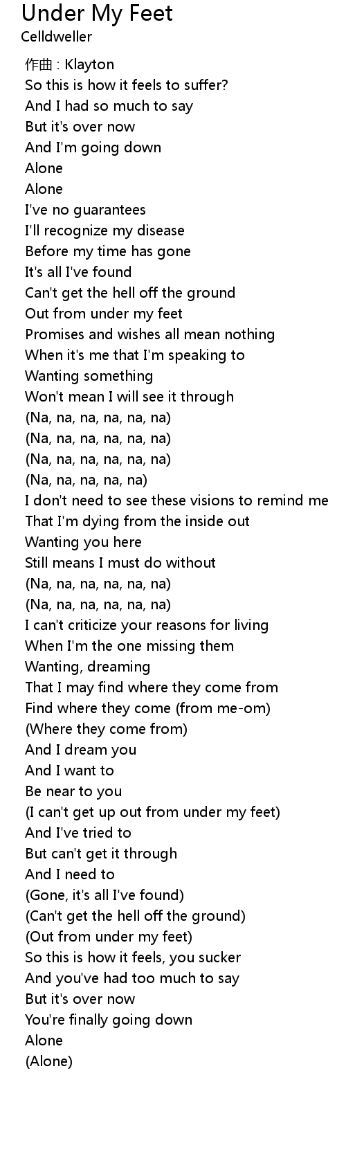 | [02:51.895] | Out from under my feet |