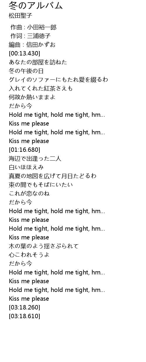 | [03:03.050] | Hold me tight, hold me tight, hm… |
