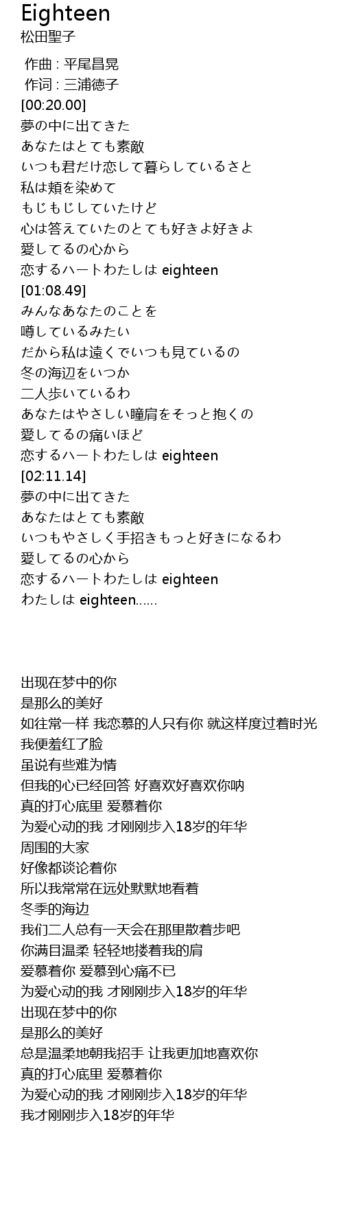 | [02:05.23] | 恋するハートわたしは eighteen |