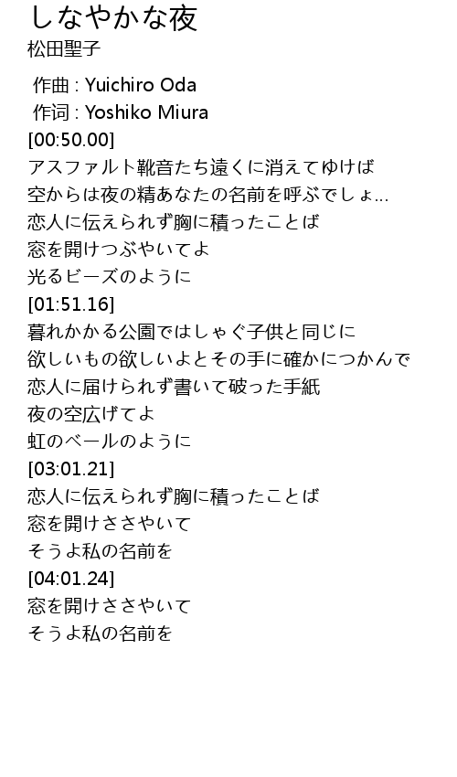 | [00:01.00] | 作词 : Yoshiko Miura |