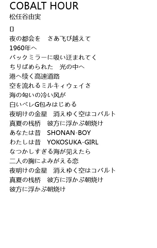 | 歌曲 | COBALT HOUR |