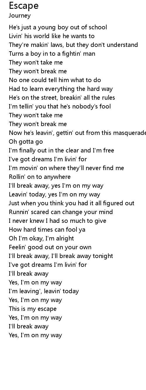I'll break away, yes I'm on my way |