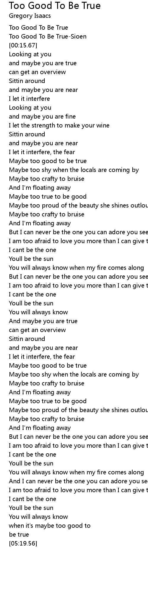 Too Good To Be True |