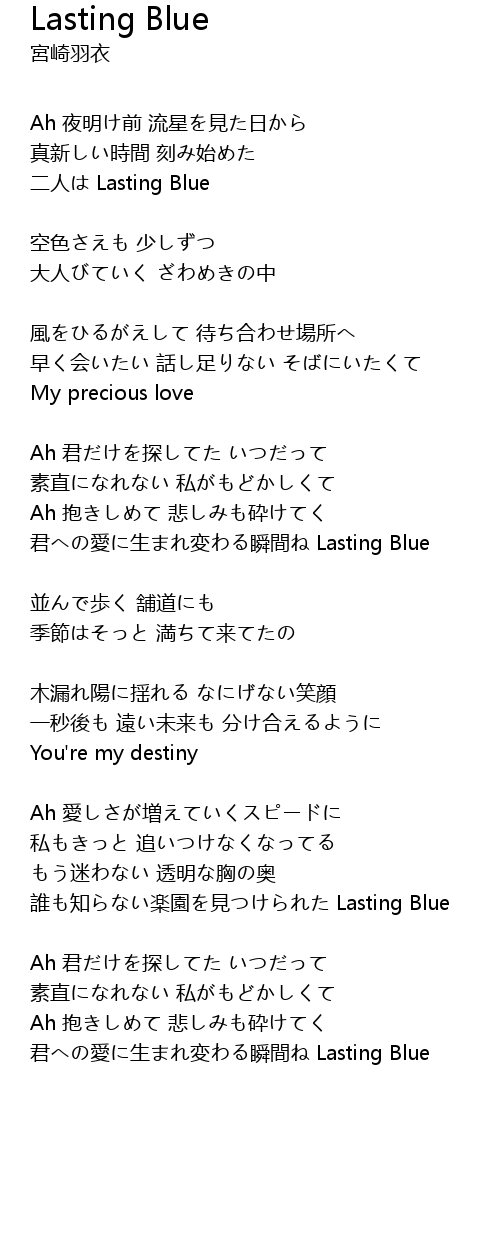| [01:21.50] | 君への愛に生まれ変わる瞬間ね Lasting Blue |
