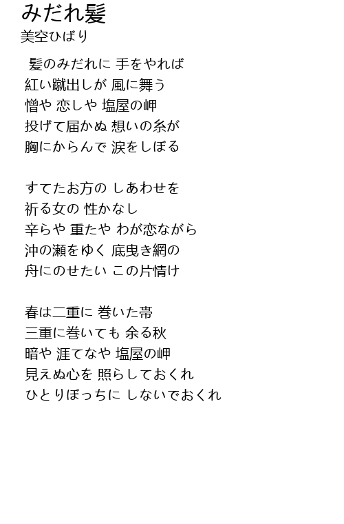 髪のみだれに 手をやれば |