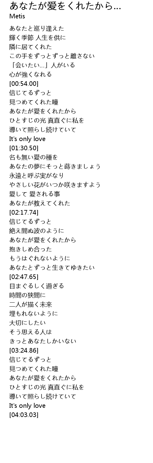 | [02:38.16] | あなたとずっと生きてゆきたい |