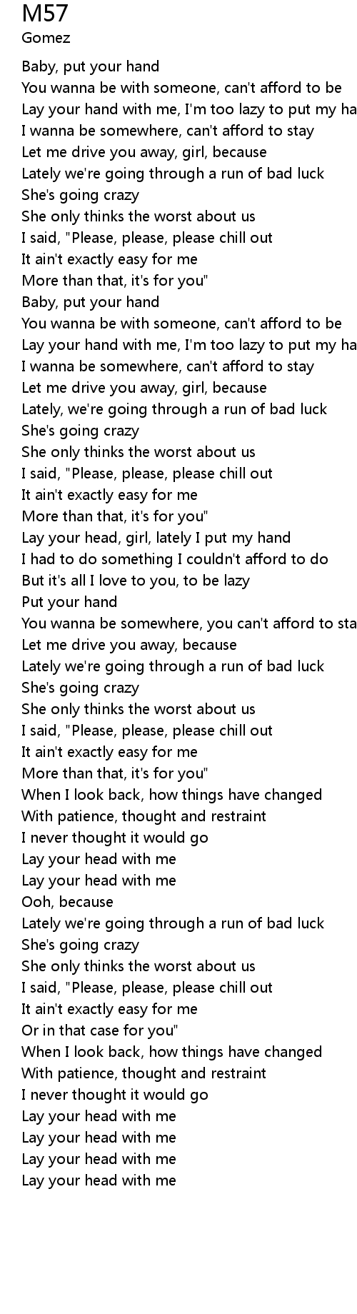 Lay your head, girl, lately I put my hand |