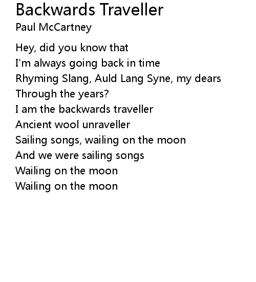| I am the backwards traveller | |
