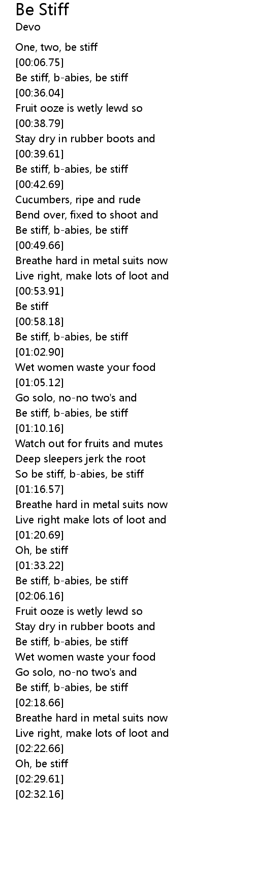 | [02:16.11] | Be stiff, b-abies, be stiff |