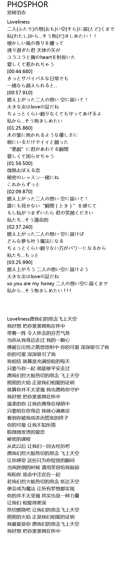 | [03:02.170] | 燃え上がった二人の想い 空に届けば |