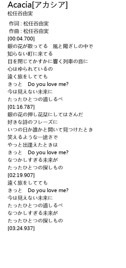 | [02:01.456] | きっと Do you love me? |