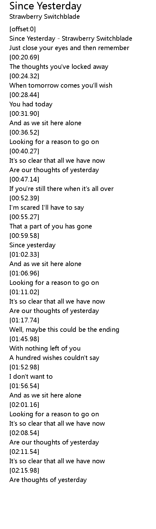 [00:01.50] Since Yesterday - Strawberry Switchblade