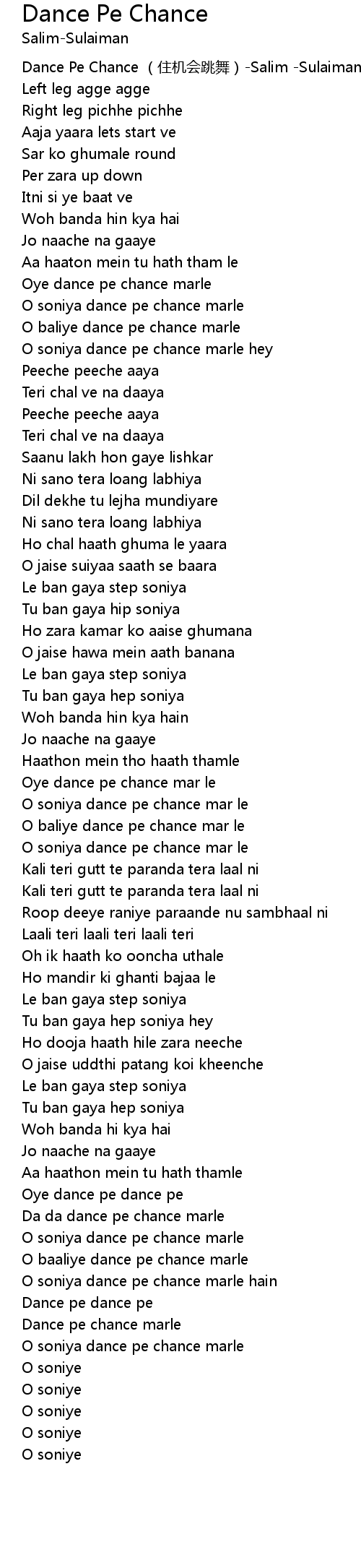 | [00:00.00] | Dance Pe Chance (住机会跳舞)-Salim -Sulaiman |