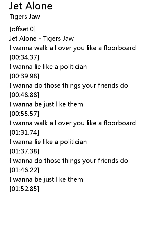 | [00:00.52] | Jet Alone - Tigers Jaw |