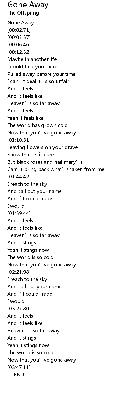 | [00:00.00] | Gone Away |