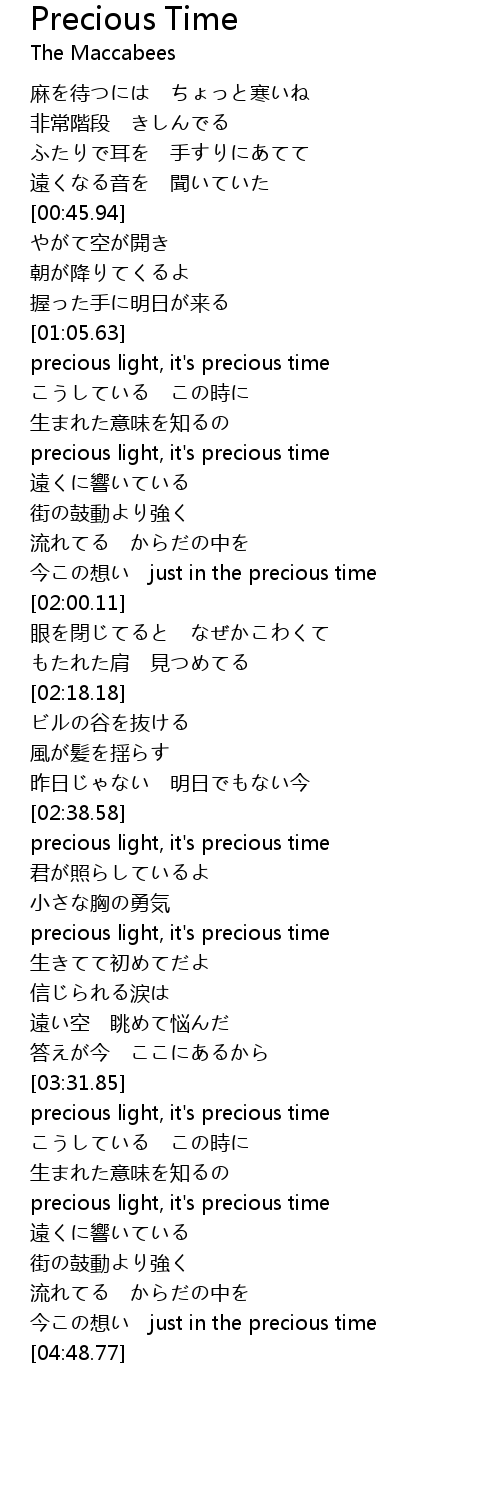 | [03:56.19] | precious light, it's precious time |