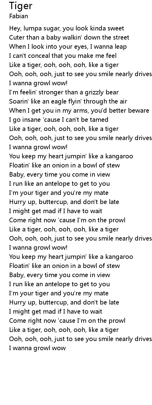 Like a tiger, ooh, ooh, ooh, like a tiger |