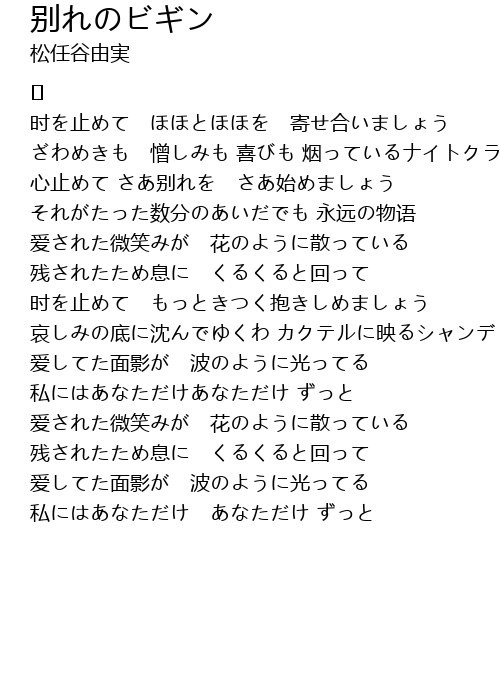 | 歌曲 | 别れのビギン |