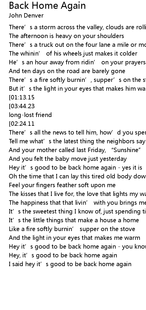 | [04:25.19] | I said hey it' s good to be back home again |